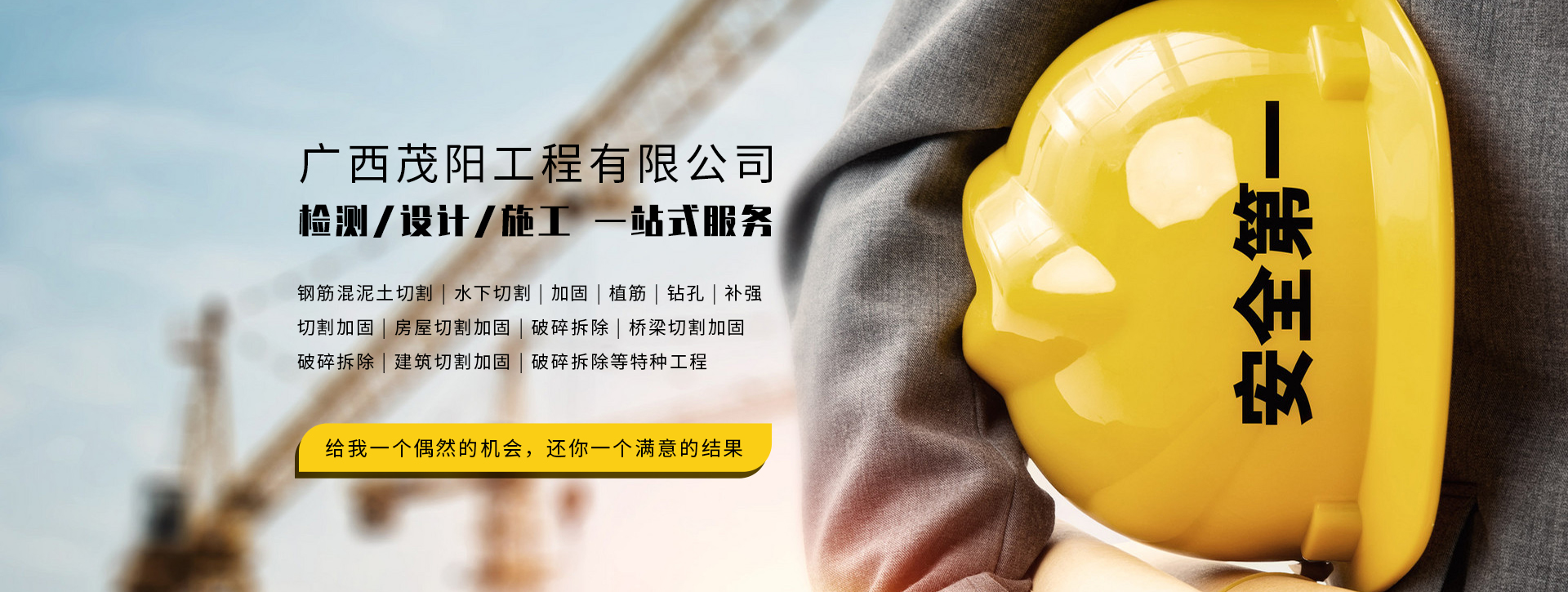 • 廣西茂陽工程有限公司,是一家鋼筋混泥土切割,水下切割、加固、植筋、鉆孔、補強、切割加固、房屋切割加固/破碎拆除、橋梁切割加固/破碎拆除、建筑切割加固/破碎拆除等特種工程的施工隊伍